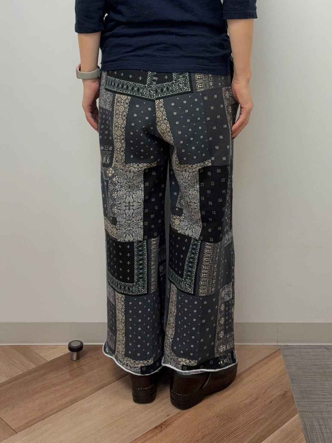秋冬素材の裏毛仕様で、バンダナ柄のパッチワークのもっちりした生地を使用しています。