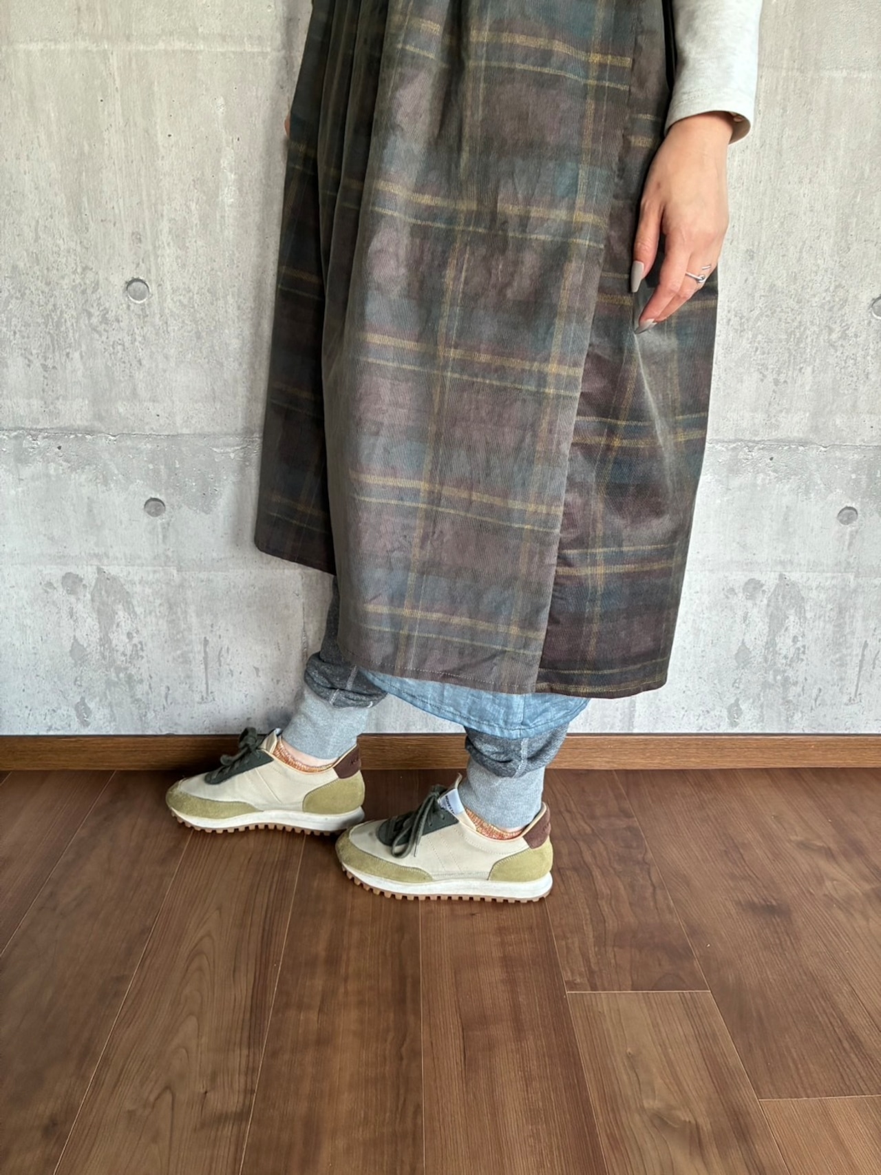 コーデュロイ×チェック柄で、秋冬感を満載に感じられるワンピース♪
