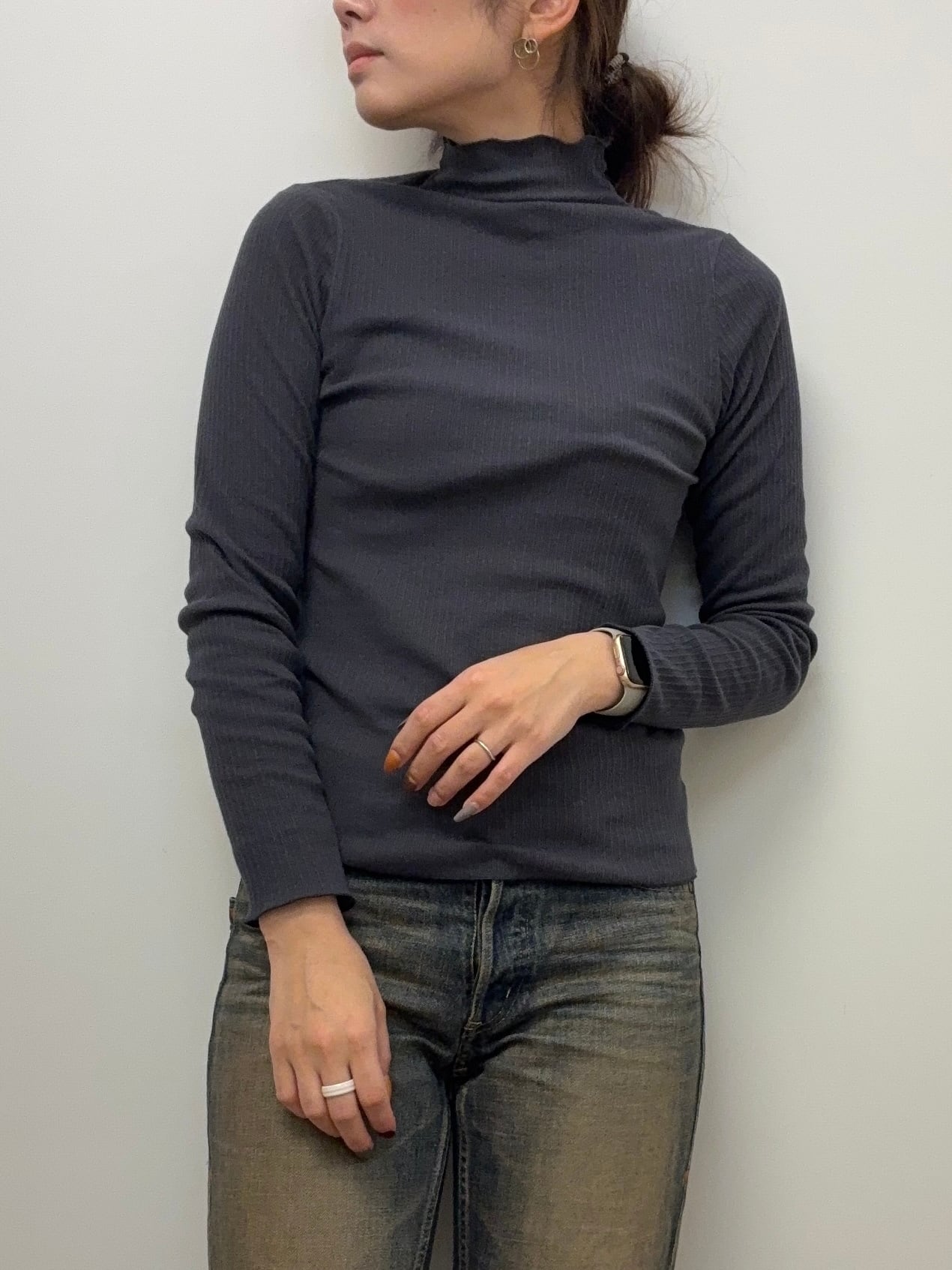 伸縮性のある生地なので、タートルが苦手な方でも窮屈さを感じずに着用できます。