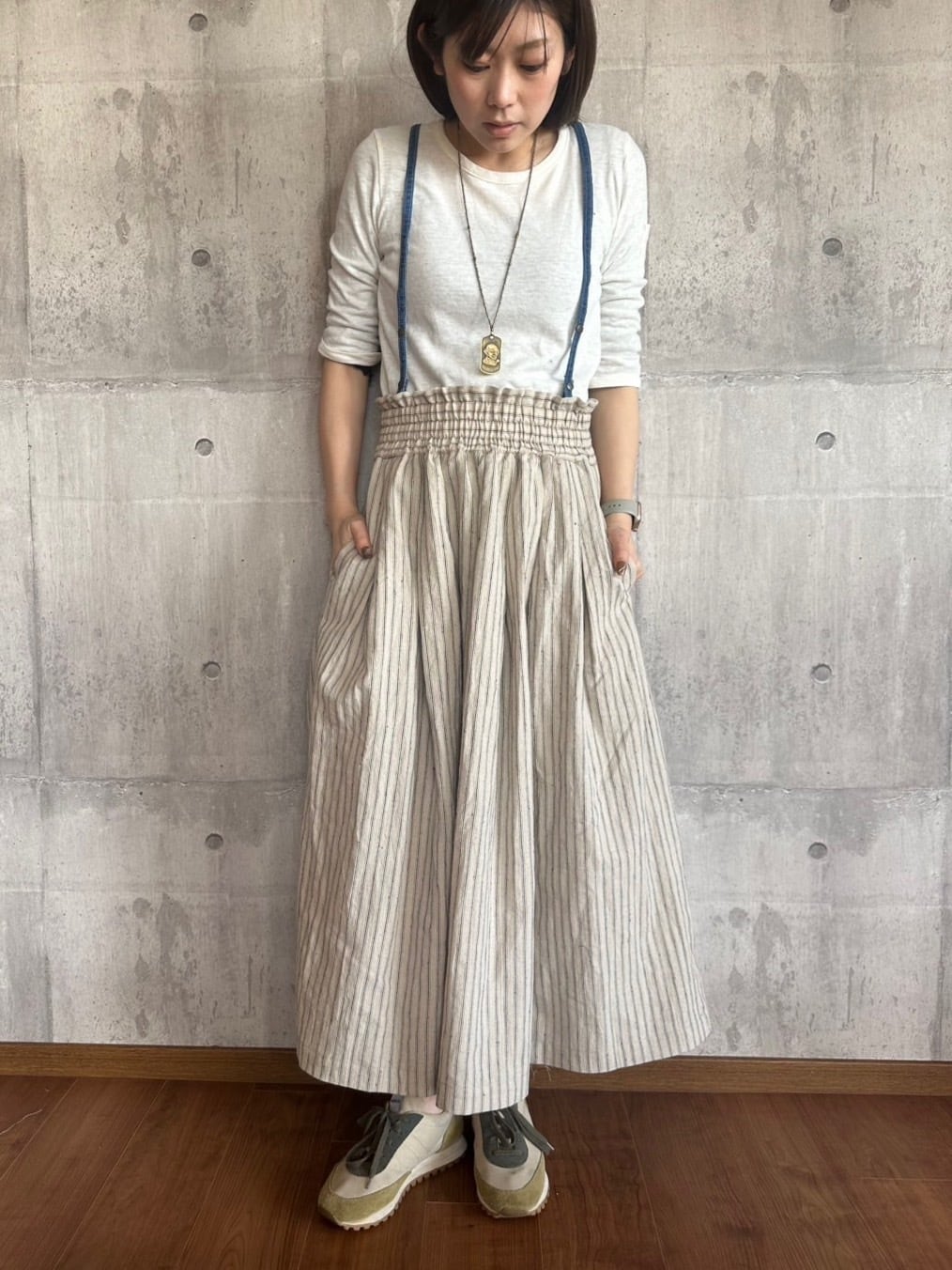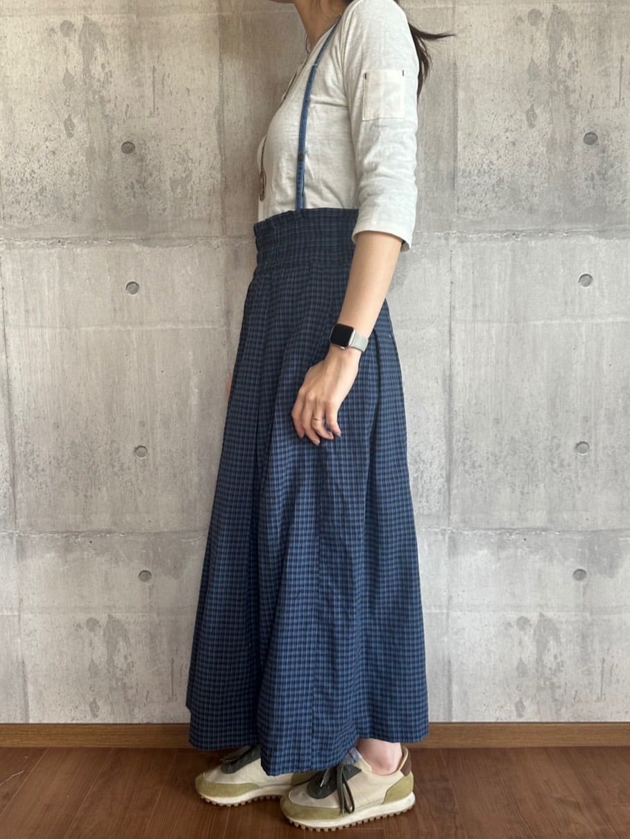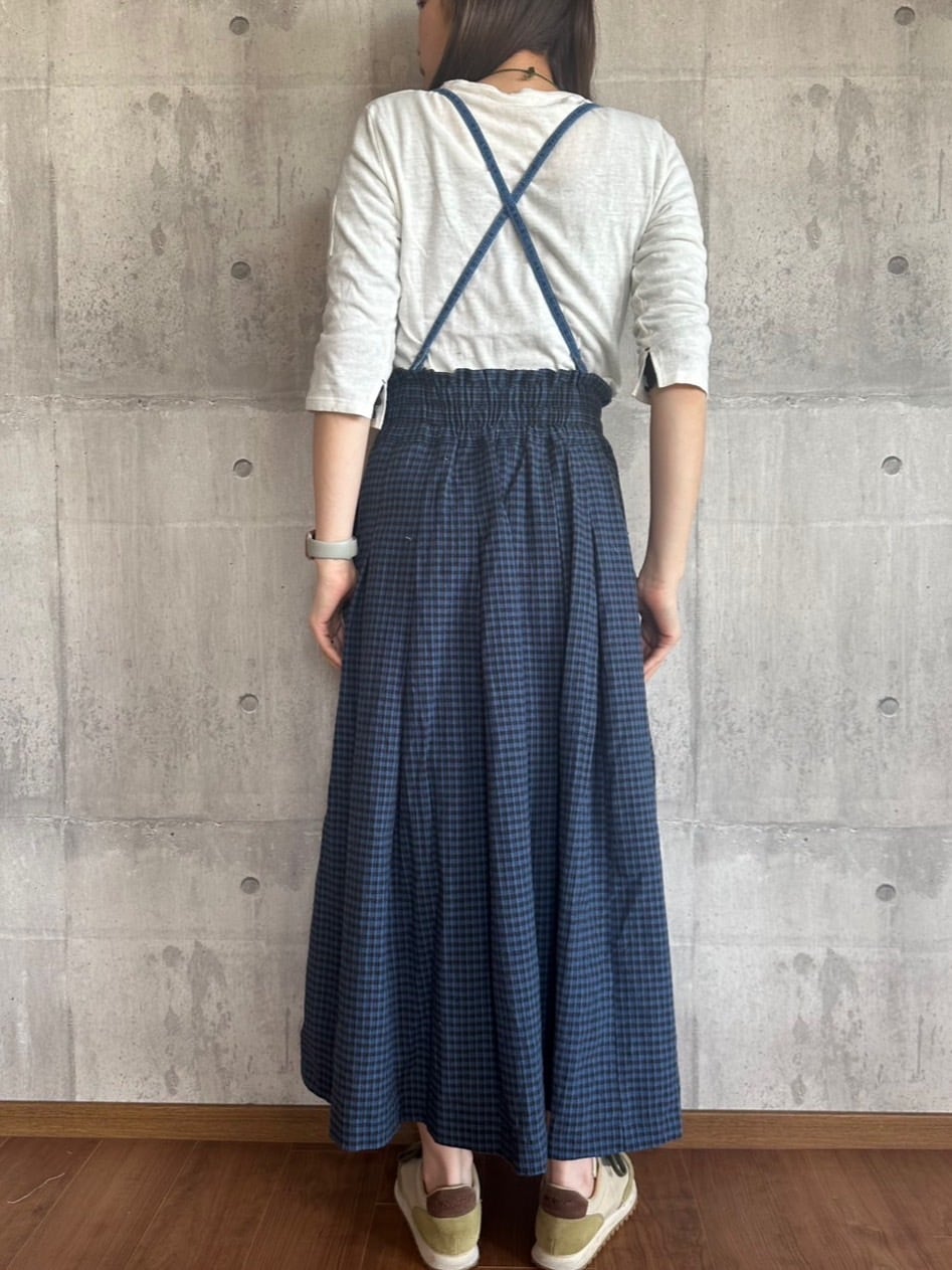 【ONEWASH】肩ひも付き綿麻ギャザースカート