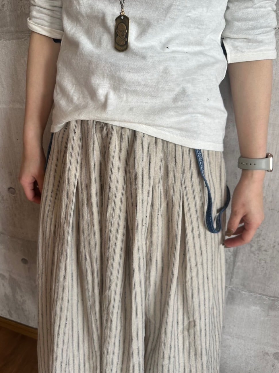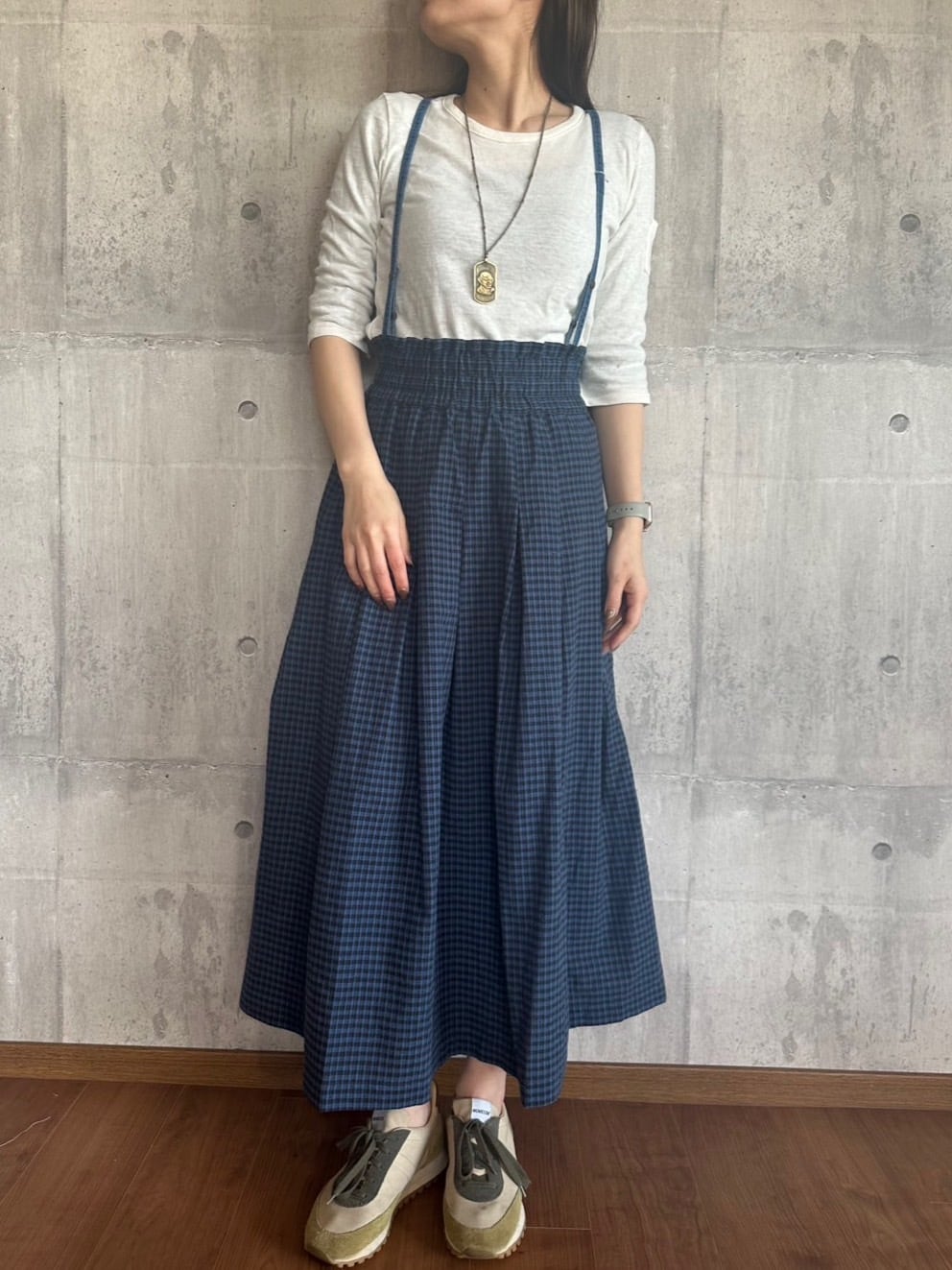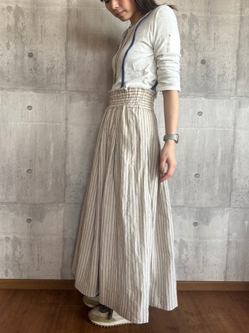 【ONEWASH】肩ひも付き綿麻ギャザースカート