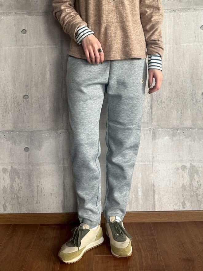 2枚の生地を中糸で繋ぎあわせたダンボールニット生地のパンツ。