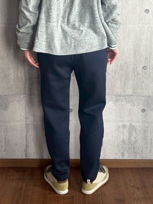 ワタリ幅は広すぎず、ゆるやかにテーパードしたすっきりめのシルエットで動きやすいパンツです。