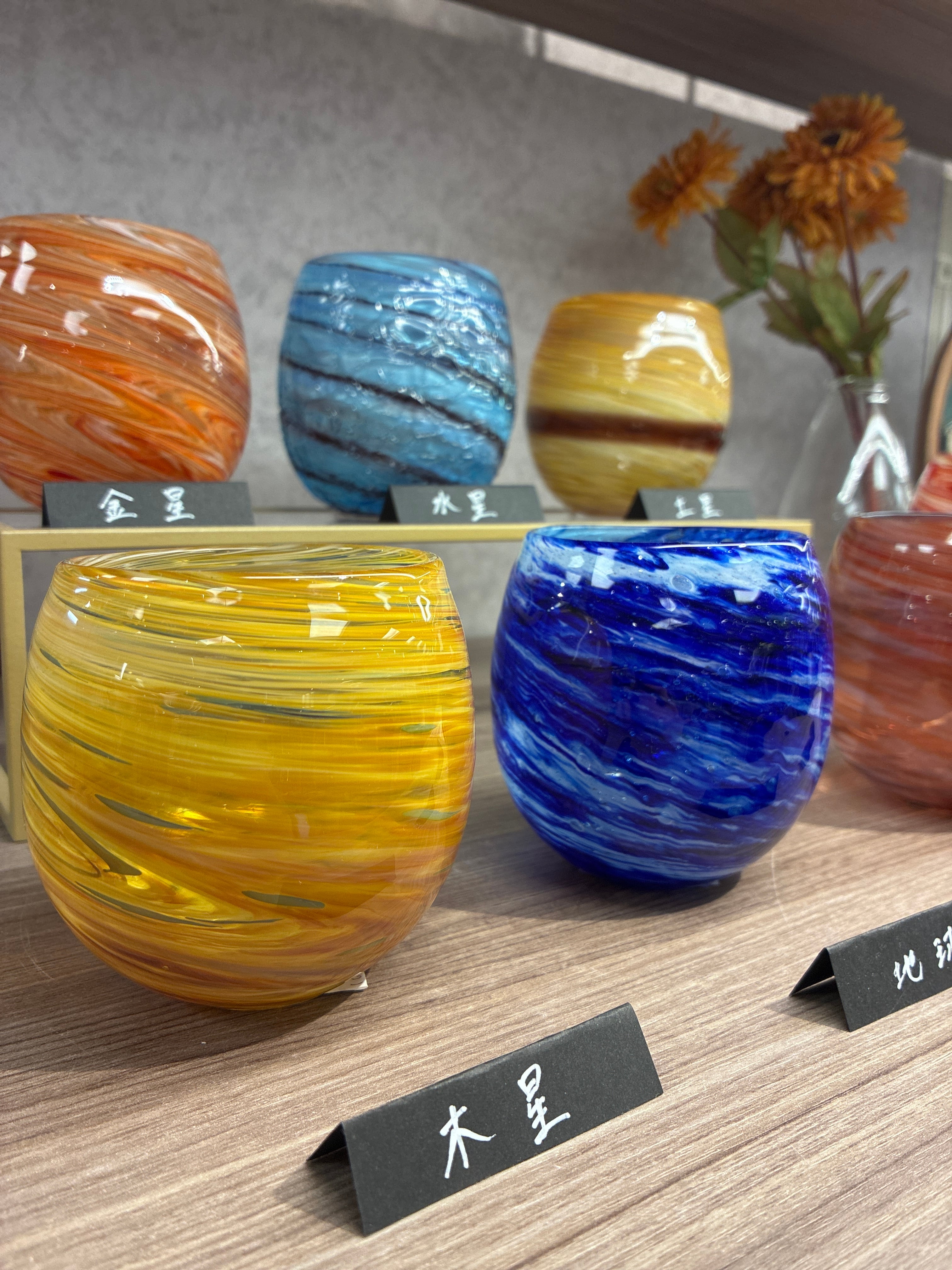 琉球ガラスの多種多様な技法が、太陽系の星々を描き出します。
