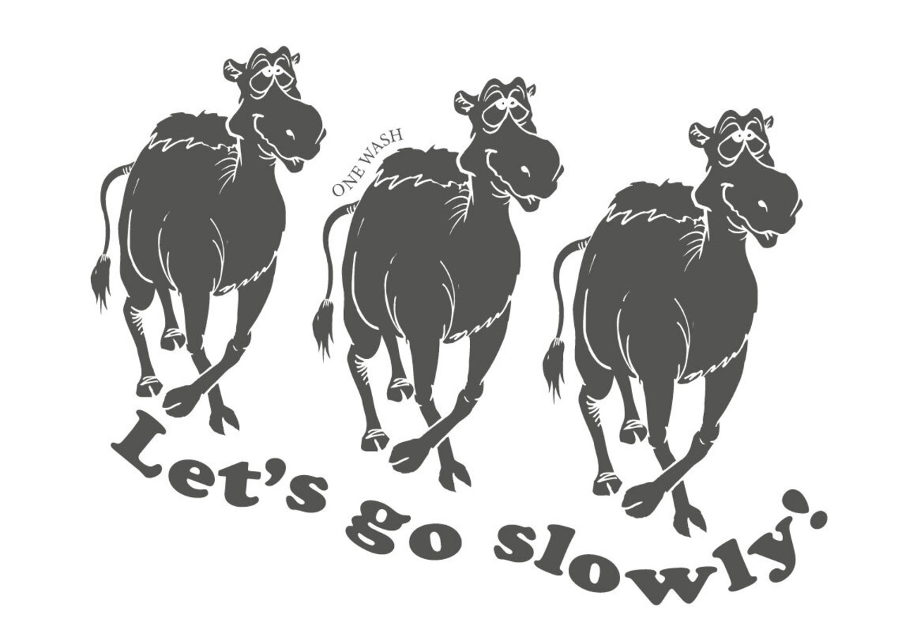 『Let's go slowly!』をテーマに、3匹のラクダのイラストがかわいいデザイン♪