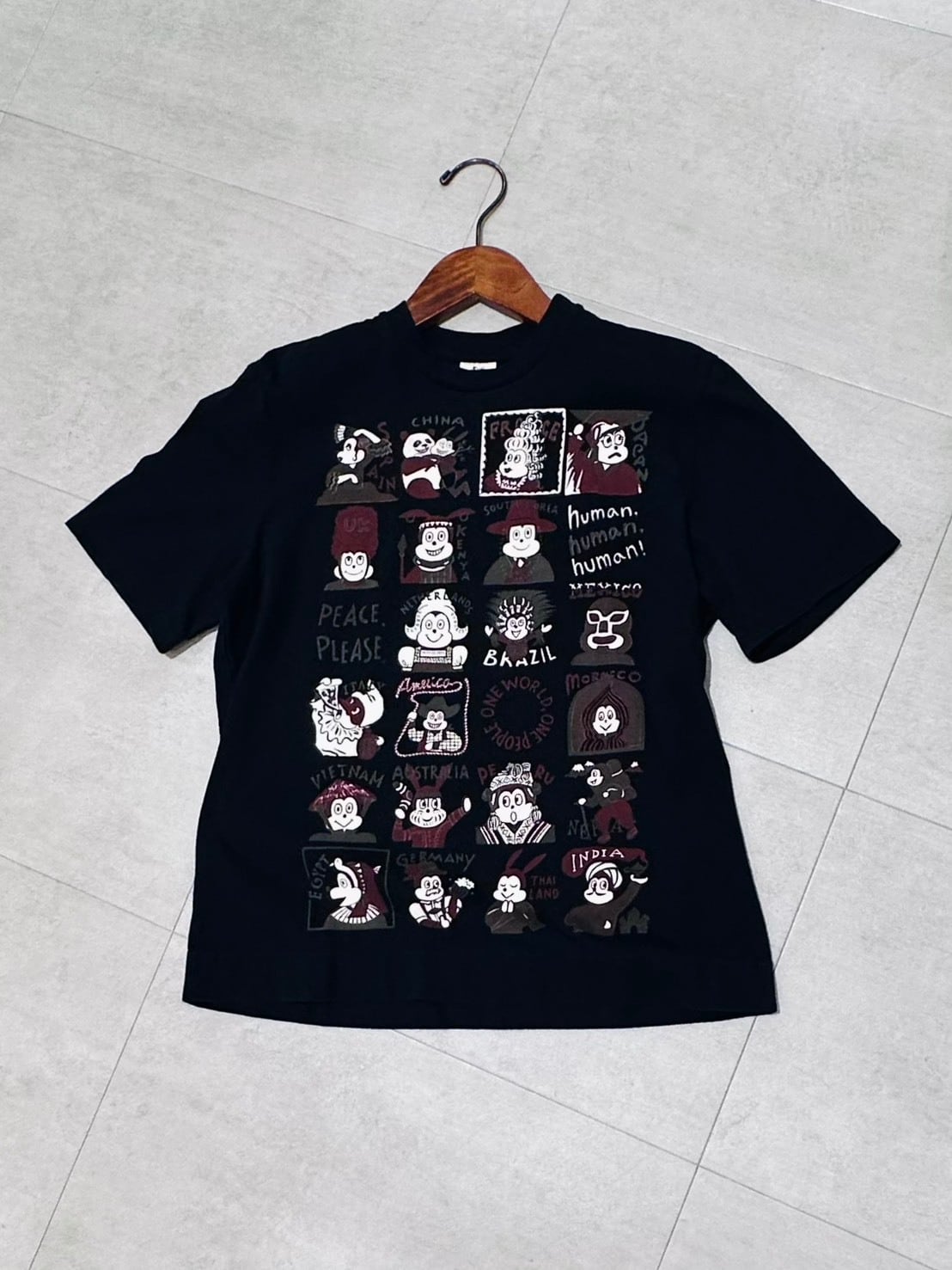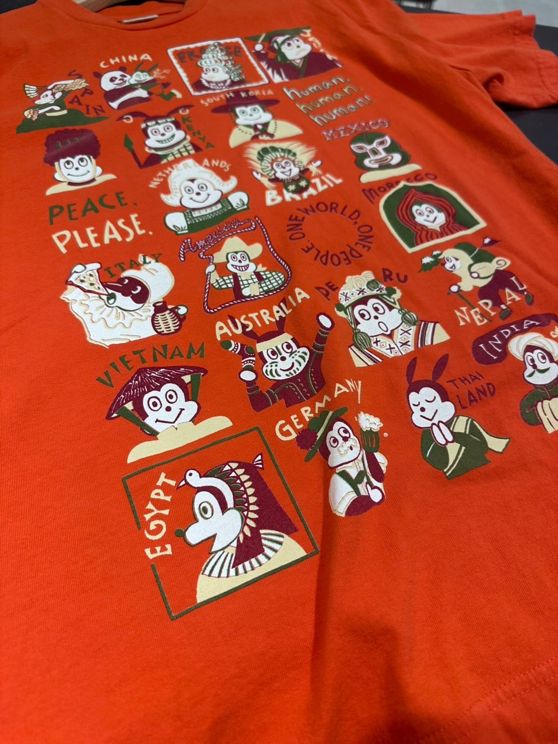世界各国のナッティーが集合。「国は違えど世界は一つ、人はみな仲間である」というメッセージが込められた”One world”半袖Tシャツ。