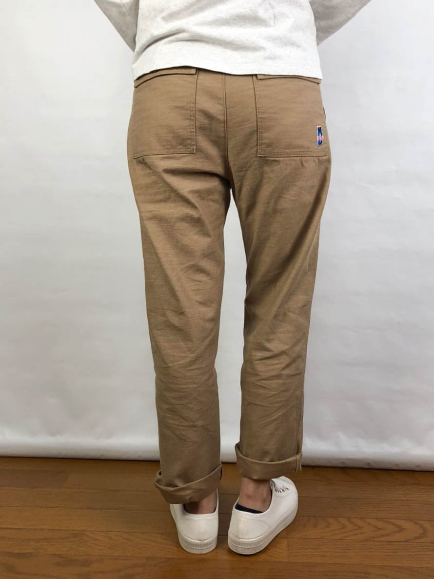 股上が深く、ゆったりとしたラインで着られるベイカーパンツ。