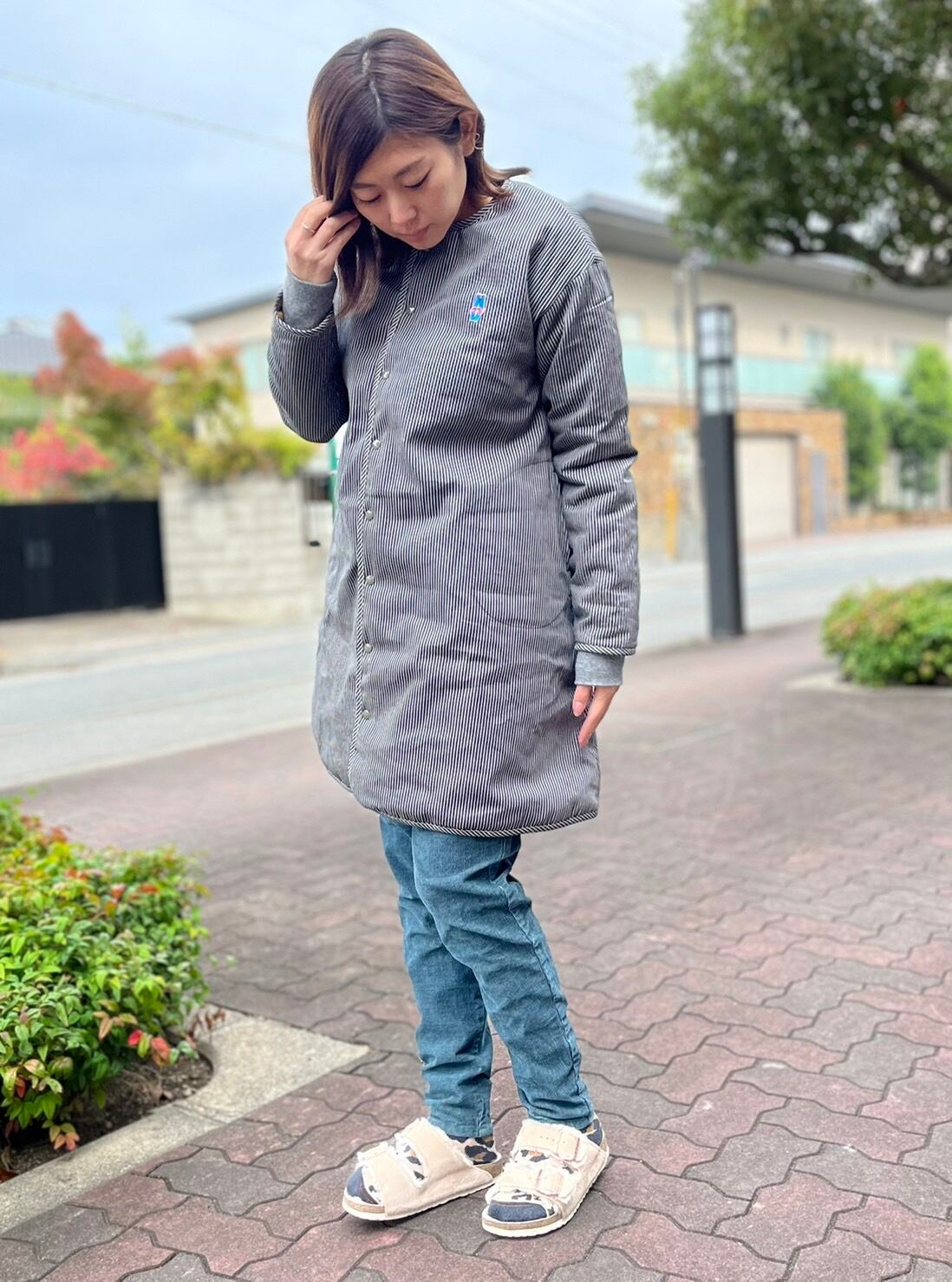 インディゴ・ヒッコリーの面はカジュアルな雰囲気で、ボトムのカラーを選ばない定番。