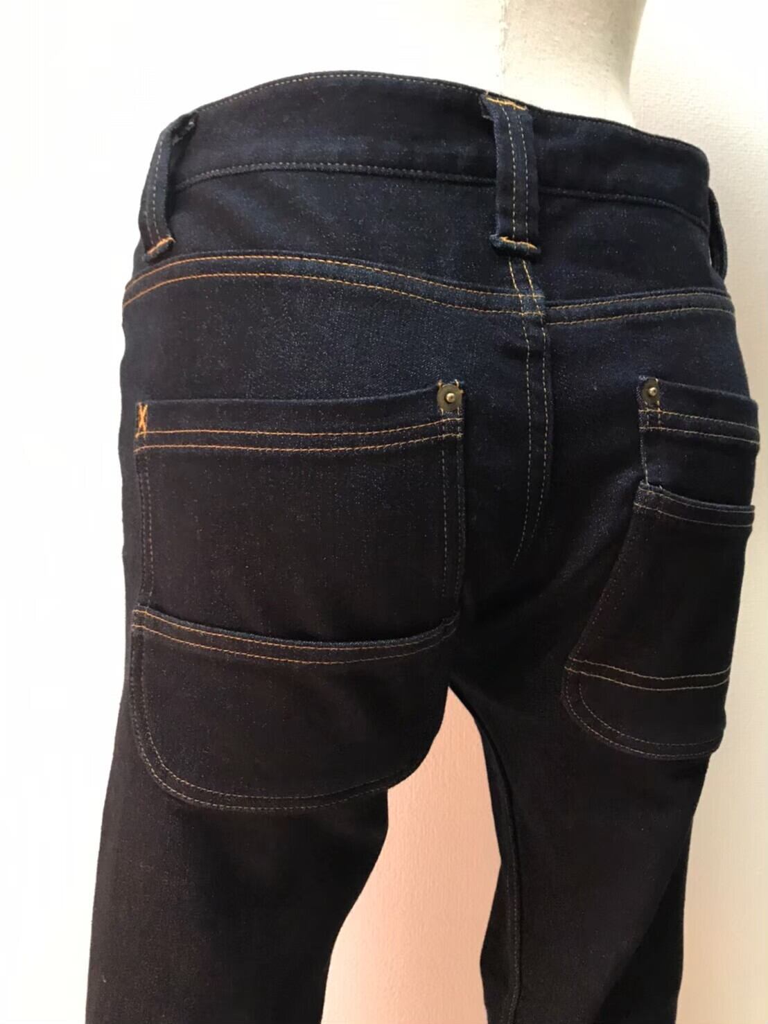 お尻のポケットが大きめに作られており、ヒップ回りをカバーするデザインです。