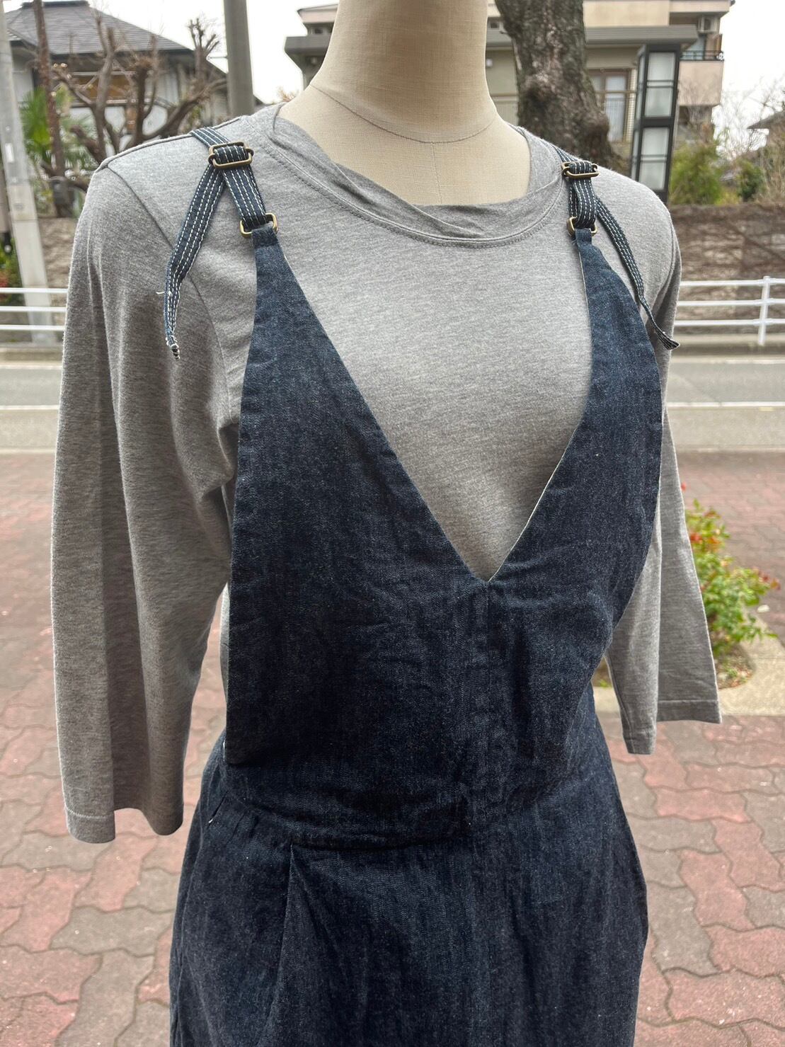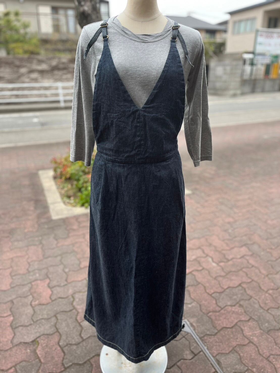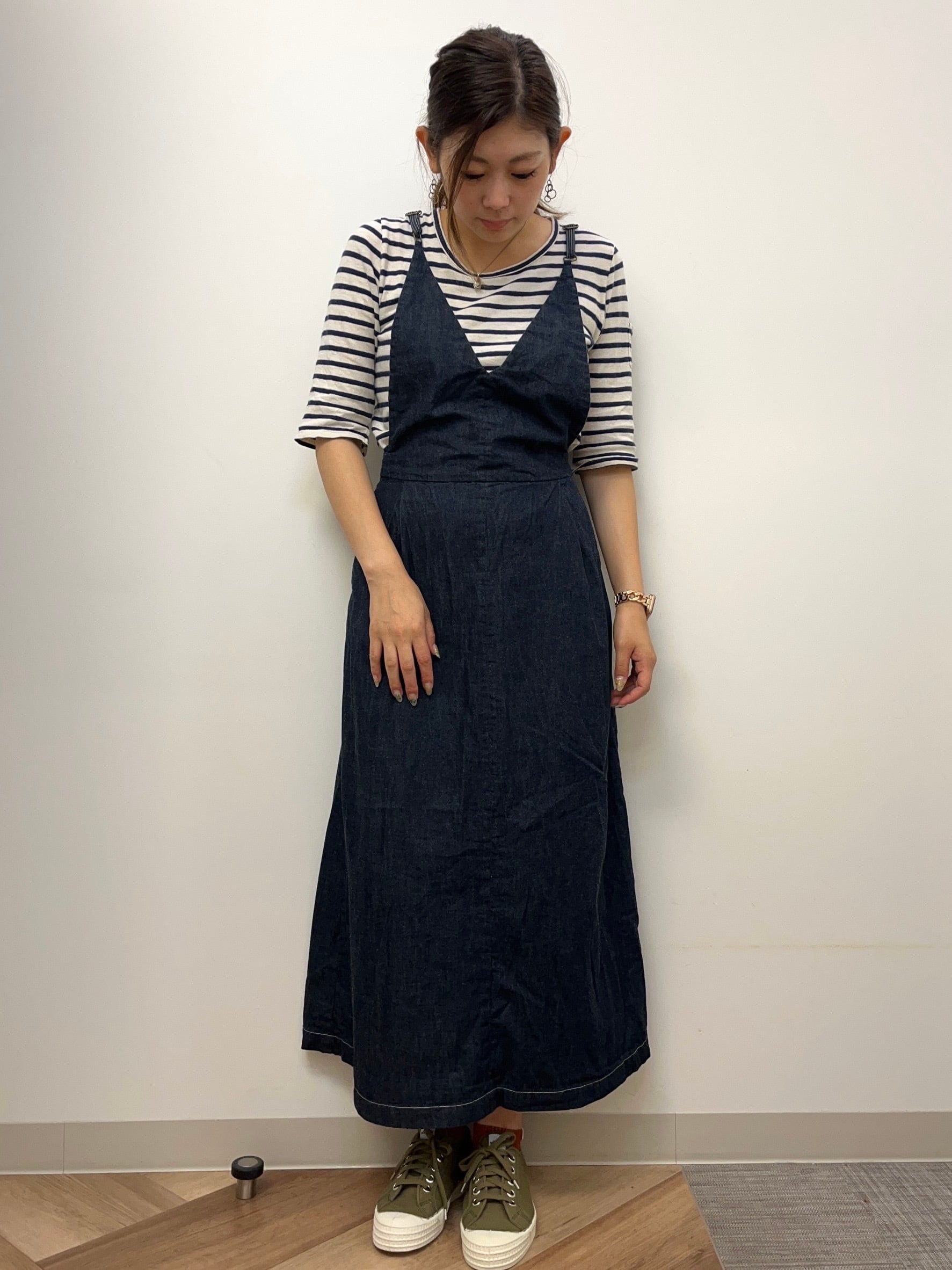 すとんと落ちたストレートラインのスカートで、大人っぽくまとまるジャンパースカート。