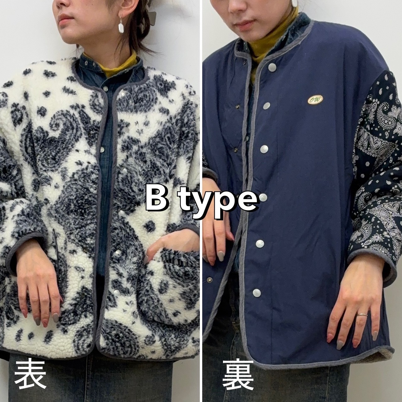 Btypeの表は、バンダナ柄がプリントされた珍しいボア。インパクト大です!