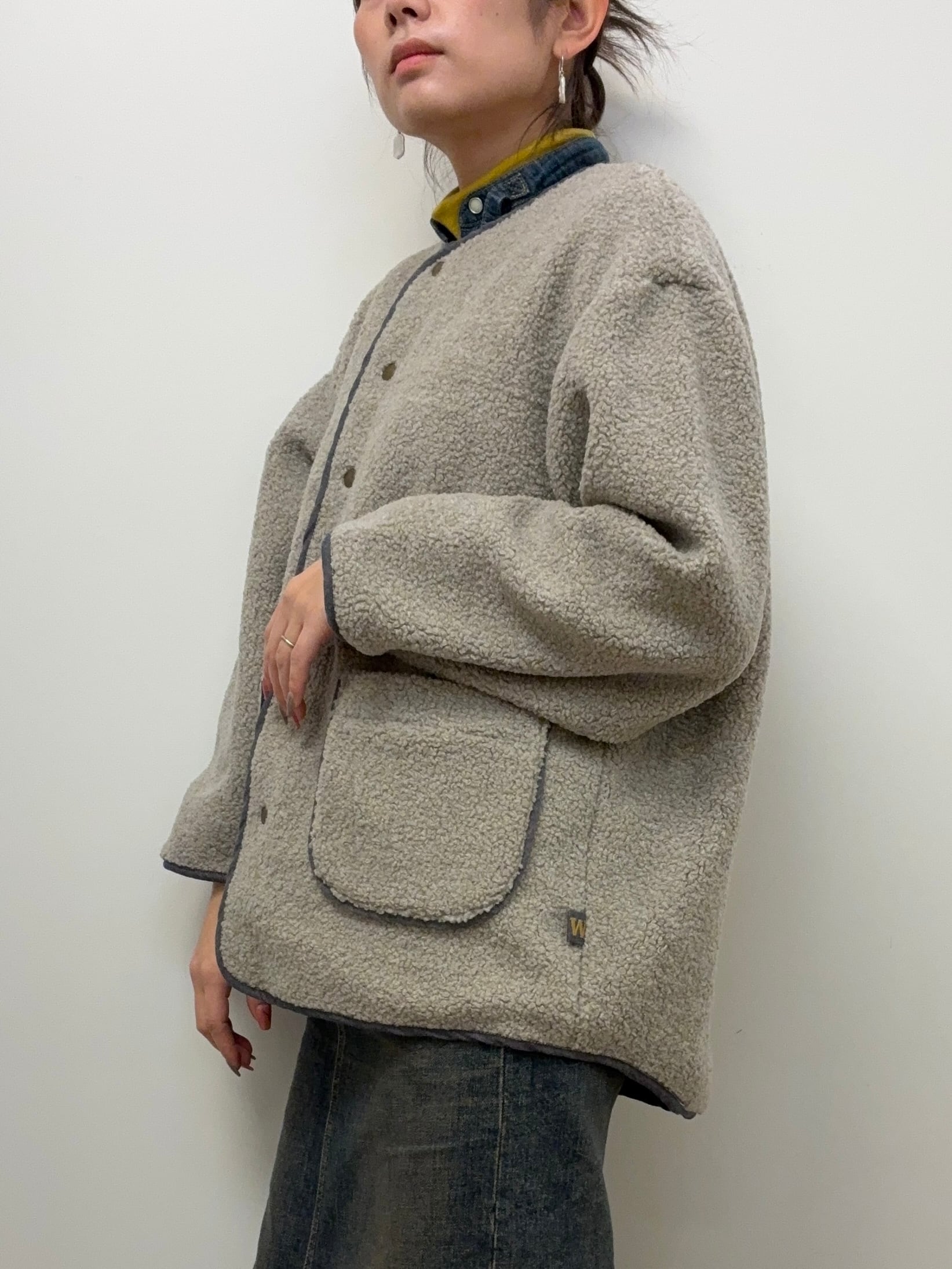 Atypeの表は、毛足は短めでくるくるとしたウール混のボア。表情のある生地です。
